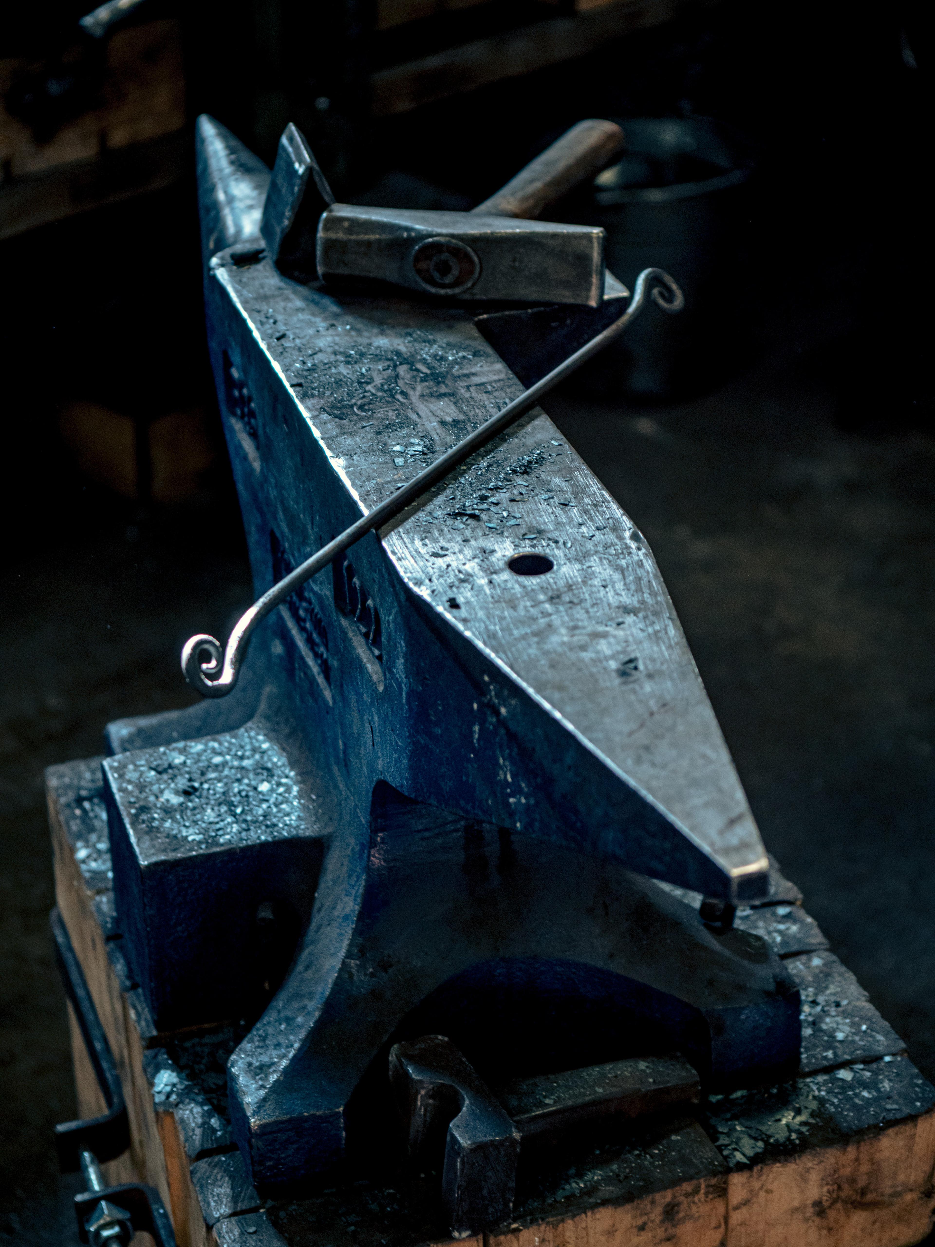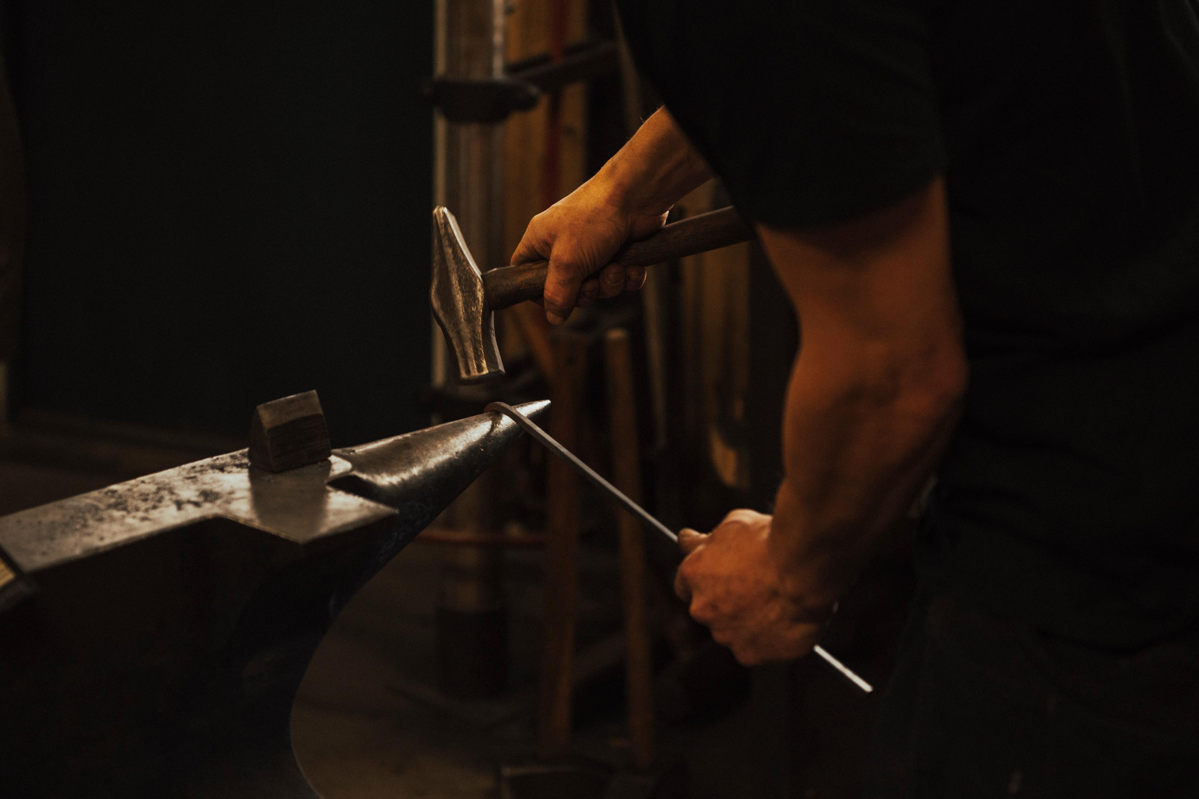 Working hot steel with hammer and anvil