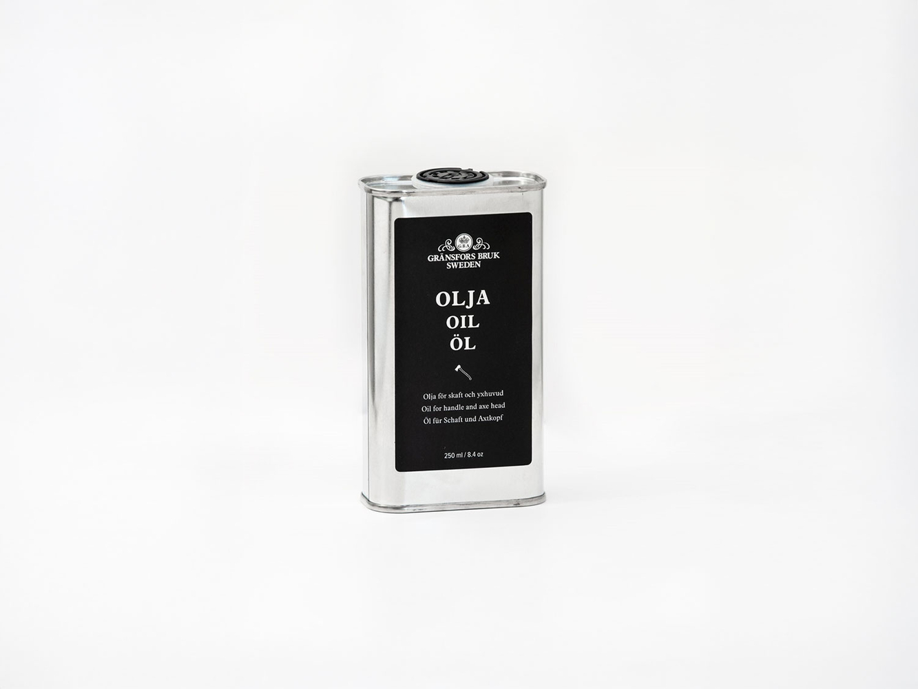 The oil* is made from raw linseed oil from Sweden. When rubbed on the handle, the oil creates a protective film and increases the lifespan of the handle. Linseed oil also works well to treat the axe head and prevent rust.