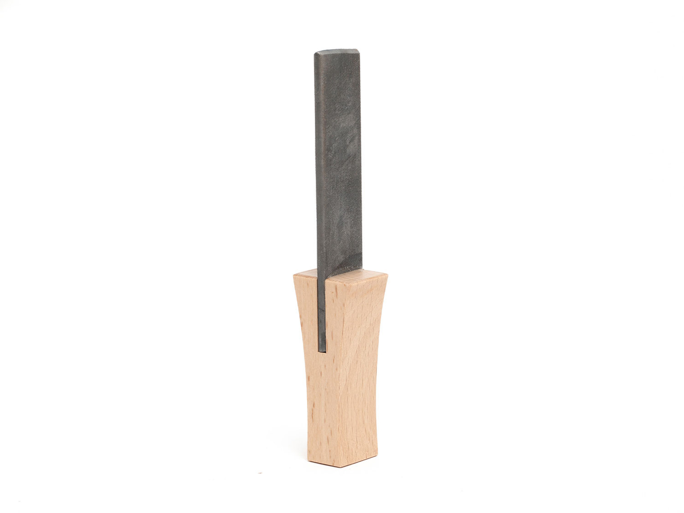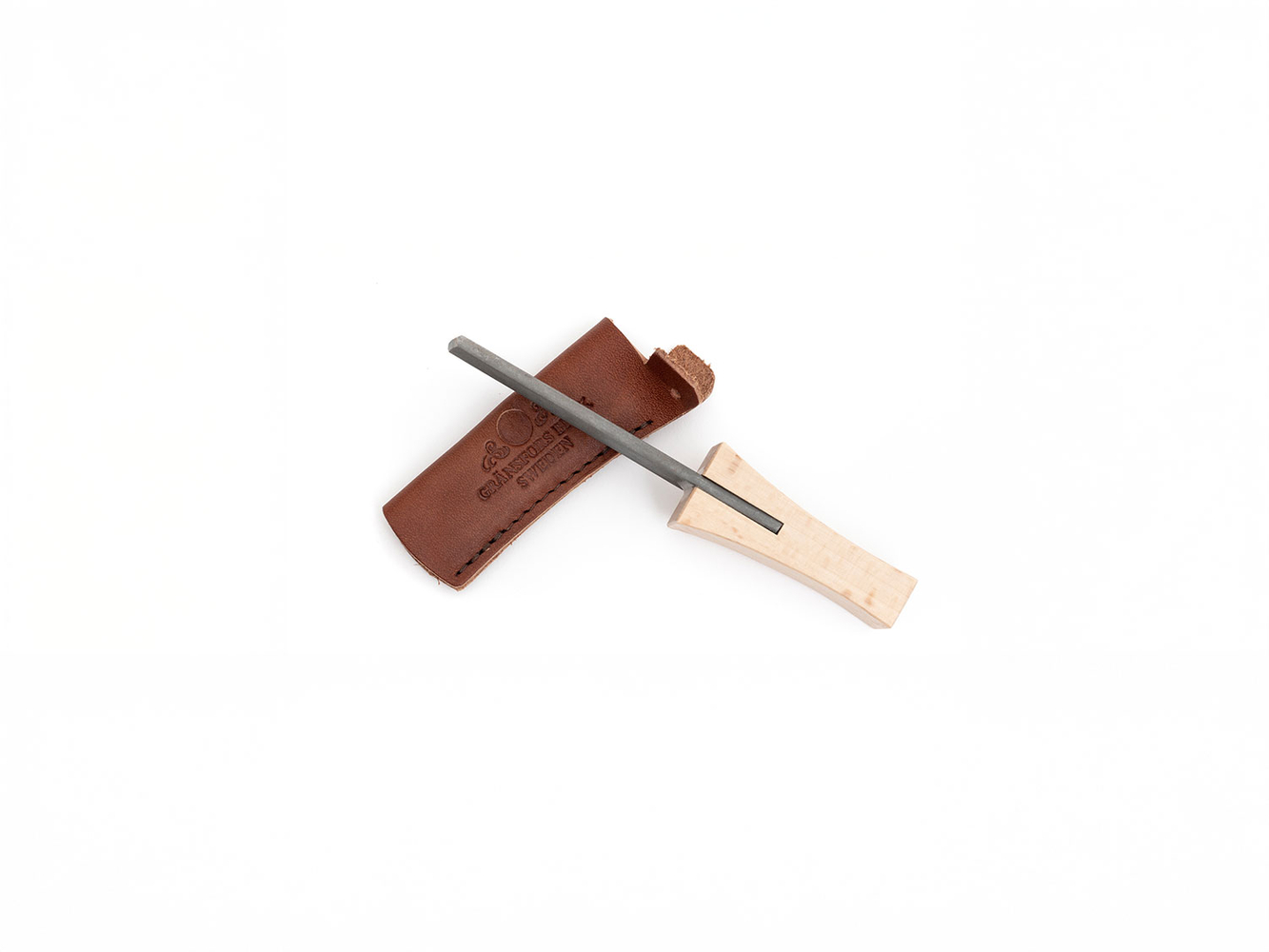 The Gränsfors axe file is a straight, finely-cut steel file with a small wooden handle. The handle is slightly wider near the file blade to give a good grip. The Gränsfors axe file is often used if an edge has larger notches which need to be ground down.