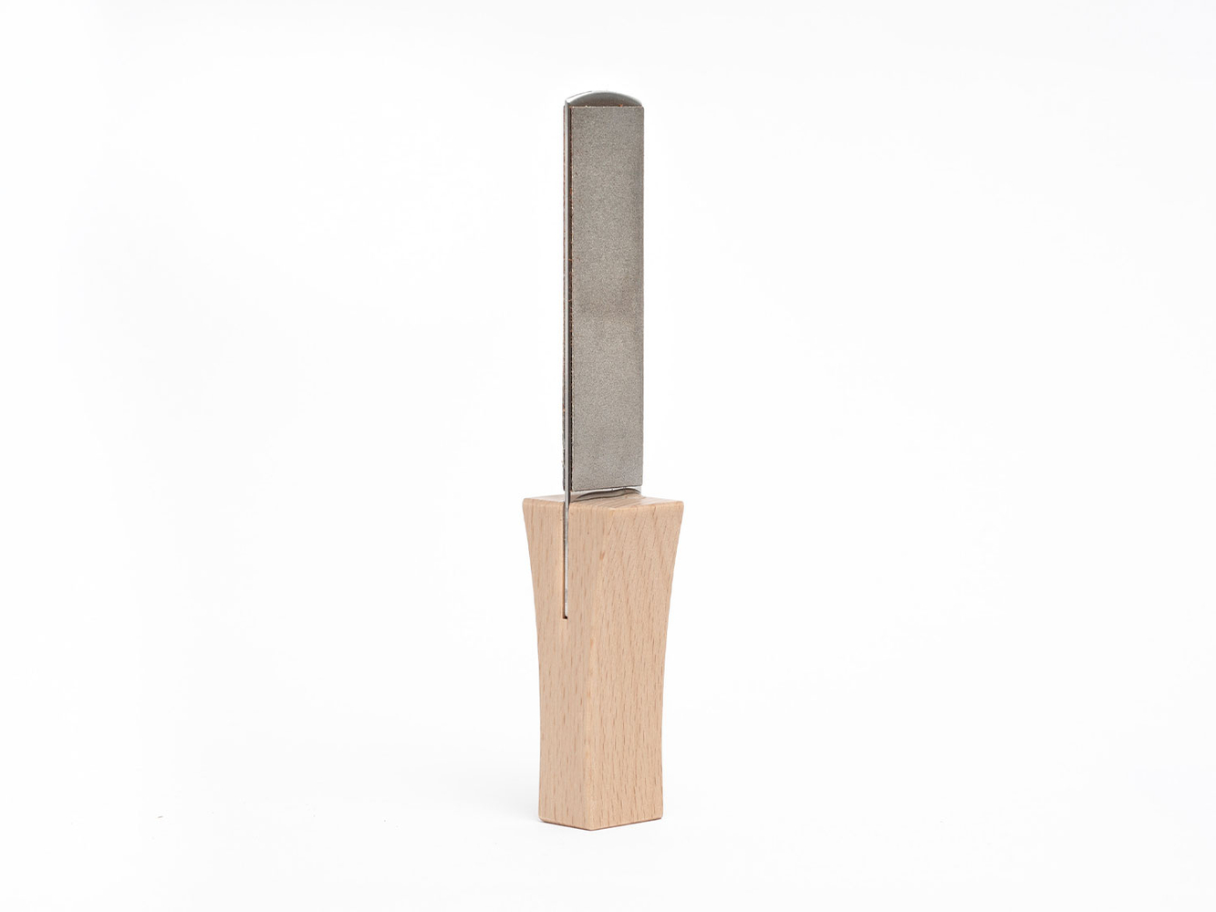 The Gränsfors diamond file is a straight diamond file with a coarse side and a finer side, and features a small wooden handle. The handle is slightly wider near the file blade to give a good grip.