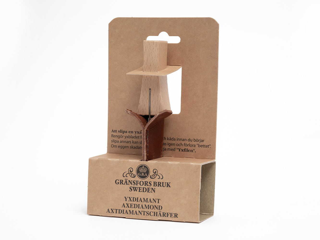 The diamond file is normally used with water but can also be used dry. The diamond file is 230-grit on the coarser side and 400-grit on the finer side. Gränsfors Bruk offers three different sharpening products that are all relatively similar to each other: Sharpening Stone, Diamond File, and Natural Whetstone. The main difference between these products is the material, but both the grit size and shape of the products differ as well. Choosing the right product comes down to individual opinion and taste.