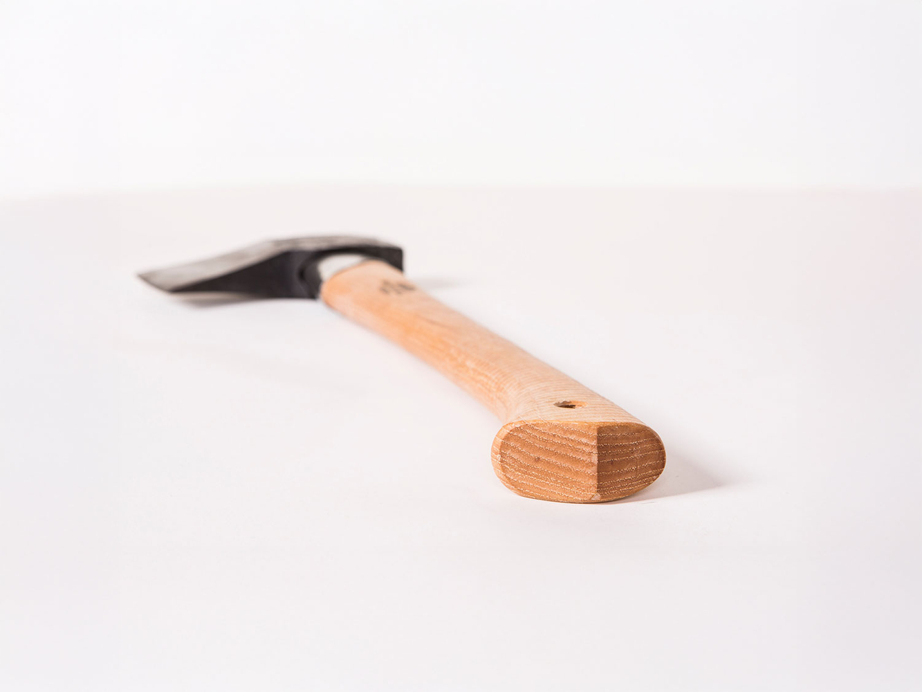 The Gränsfors Splitting Hatchet can be used with one or two hands for smaller firewood. It is forged and ground to a concave, quite thin blade at the bit.