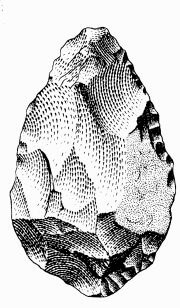 The hand axe was a pear-shaped and roughly chipped stone tool brought to an even point, with a broad handle. The hand axe was probably used for many different tasks, everything from butchering animals to digging up tubers.
