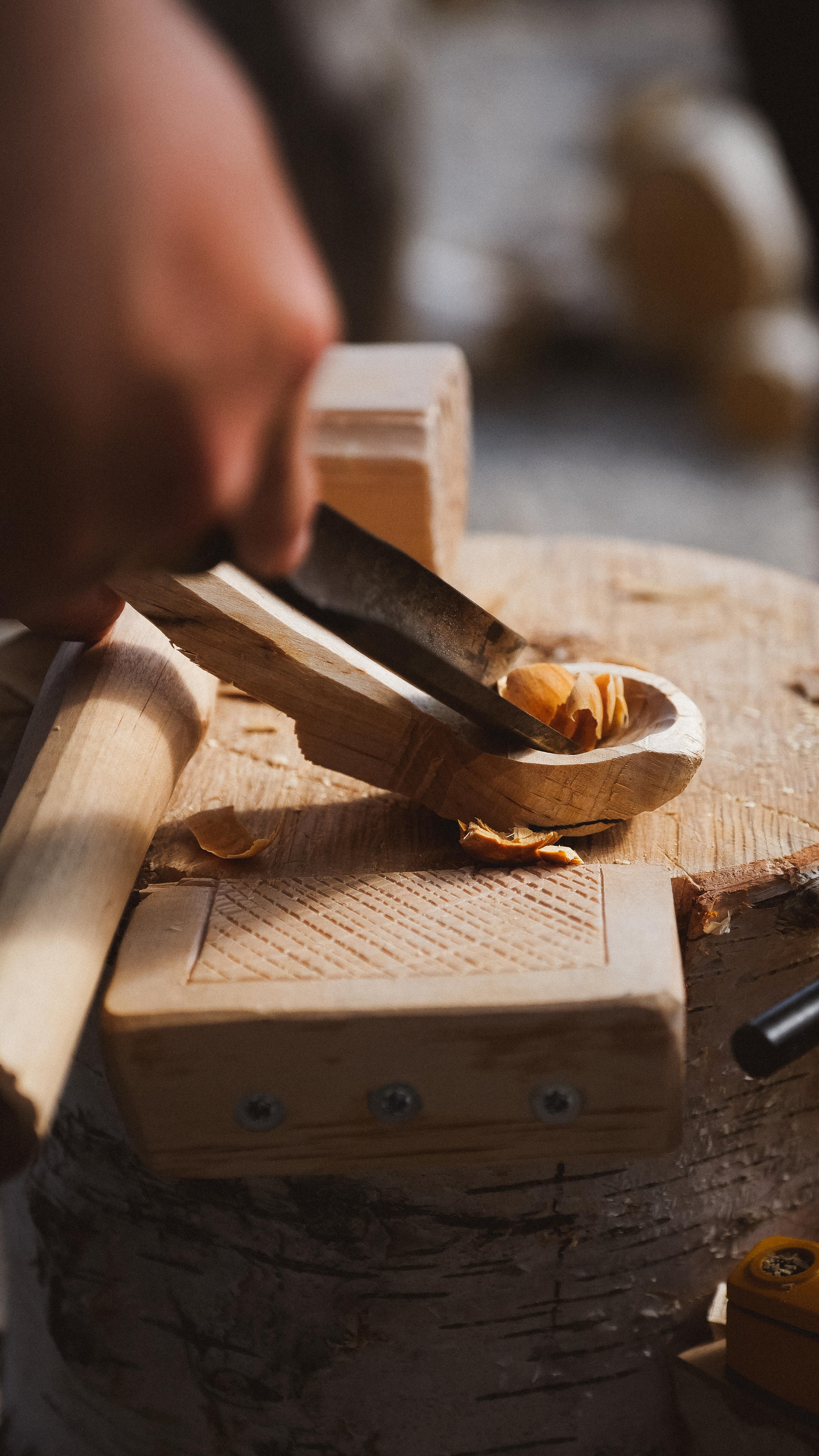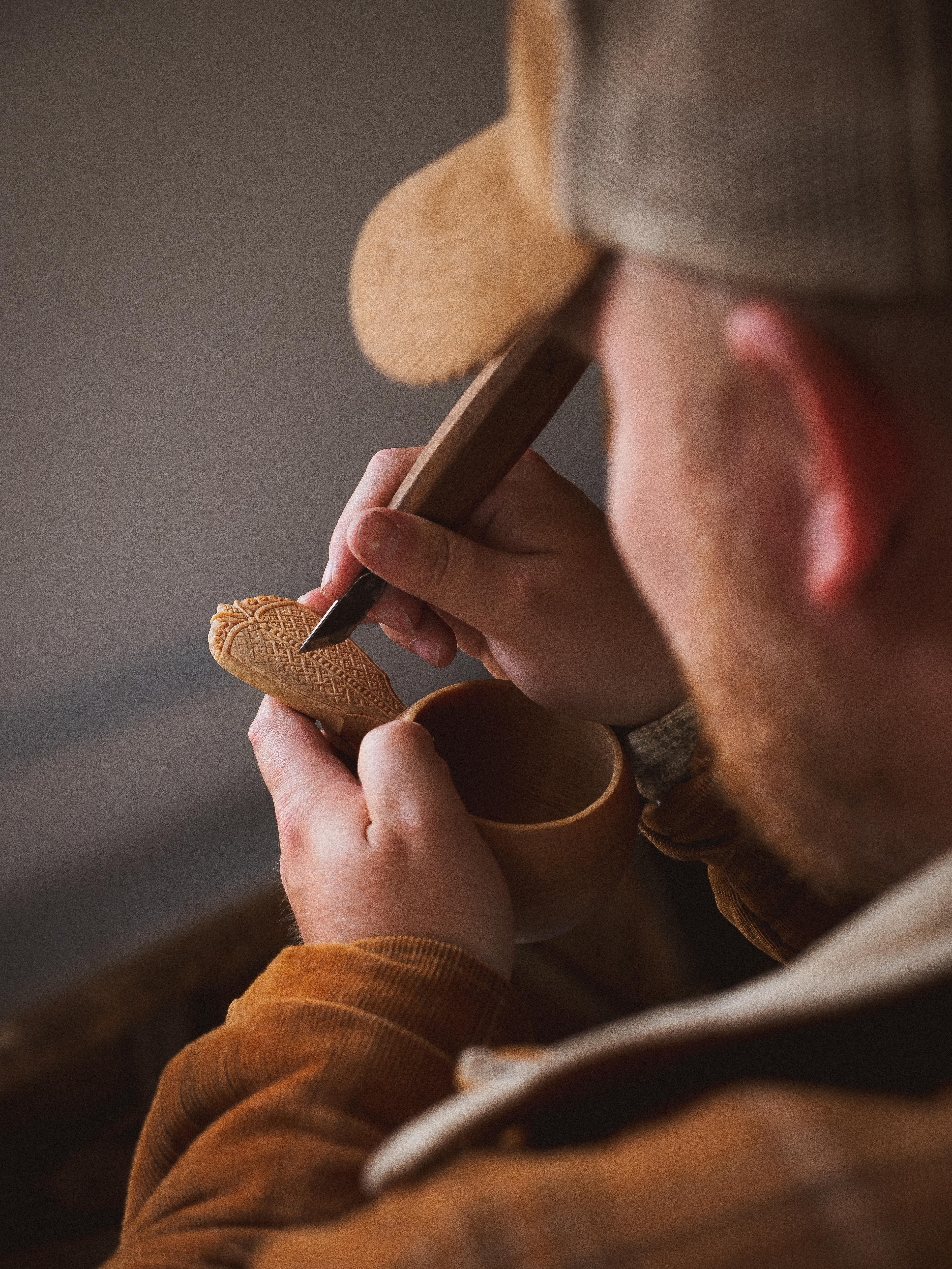 It’s easy to think that Per has never done anything but woodworking. The truth is quite different. His most intense love for the axe, knife, and wood came only in 2017 after a tough period of illnesses. The discovery of an old woodworking shop in the attic of his childhood home became the catalyst for a new lifestyle. Creating became central, and carving became Per’s anchor.
