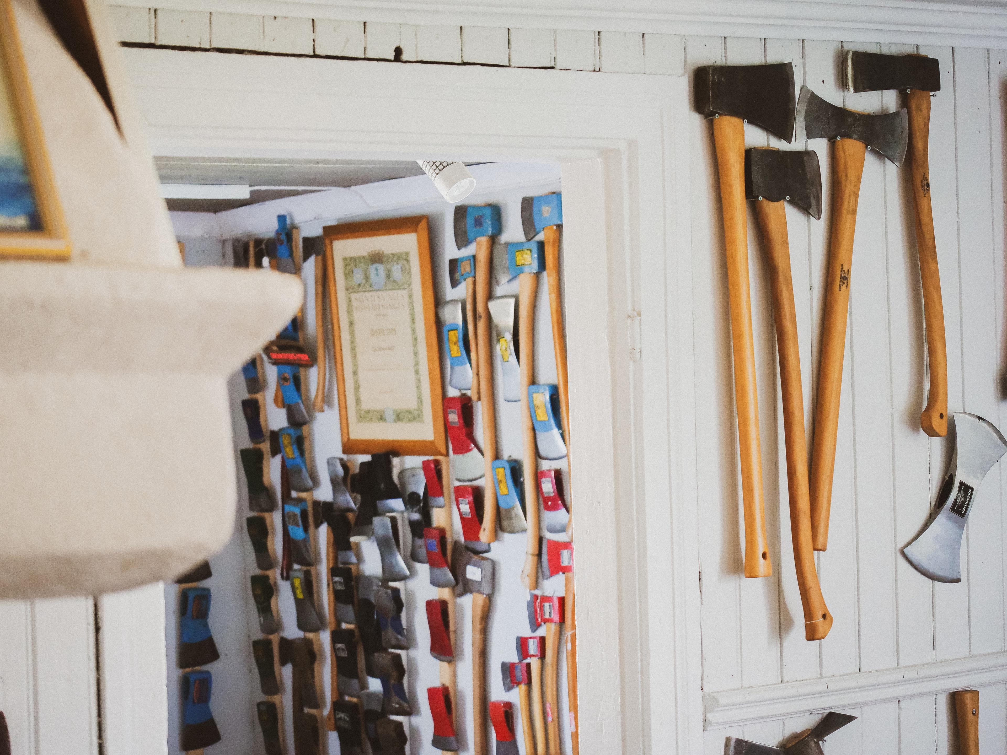 Visit the Gränsfors factory store to explore the full range of high-quality axes and tools crafted at the forge. Discover expert craftsmanship, find the perfect axe for every need, and speak with knowledgeable staff who can guide you.